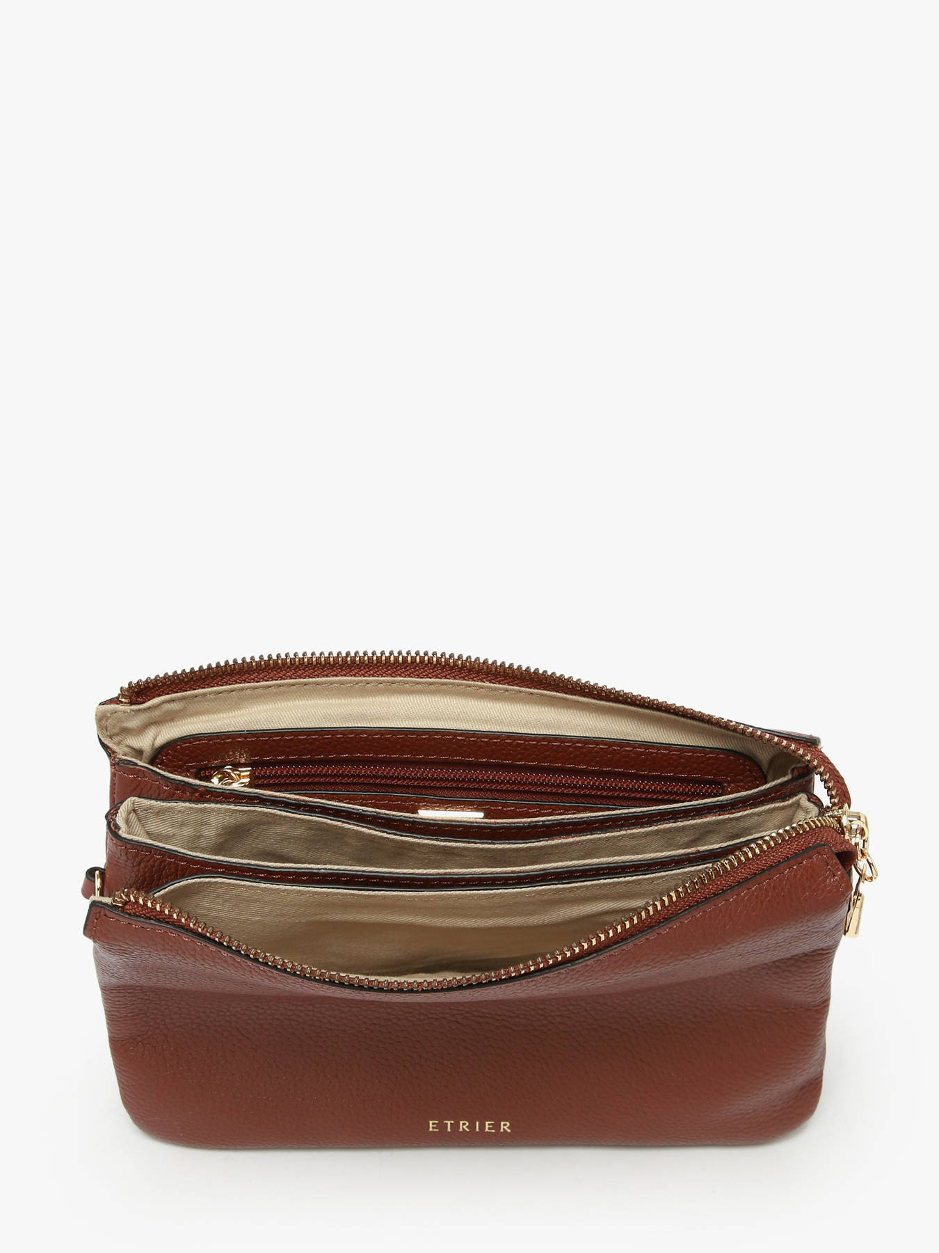 Dit veelzijdige crossbody tasje uit de Tradition collectie van Etrier kan je werkelijk met eender welke outfit combineren. Een dagje shoppen, een avondje uit of een formeler event: dit tasje is je perfecte compagnon! Gemaakt van soepel rundsleer met een gekorrelde textuur en afgewerkt met goudkleurige details voor een luxueus accent: de ideale combinatie! De tas ritst open, en onthult maar liefst drie gescheiden compartimenten, waar je jouw spulletjes overzichtelijk in kunt opbergen. Het lederen schouderriempje is verstelbaar, en kan gekruist of lang over de schouder gedragen worden.