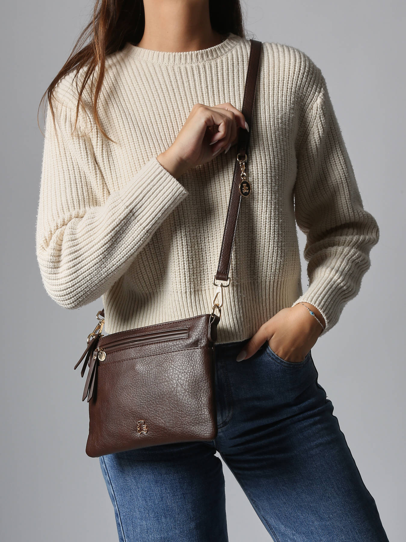 • Cross Body Tas Zip Lulu castagnette Bruin zip ZITA