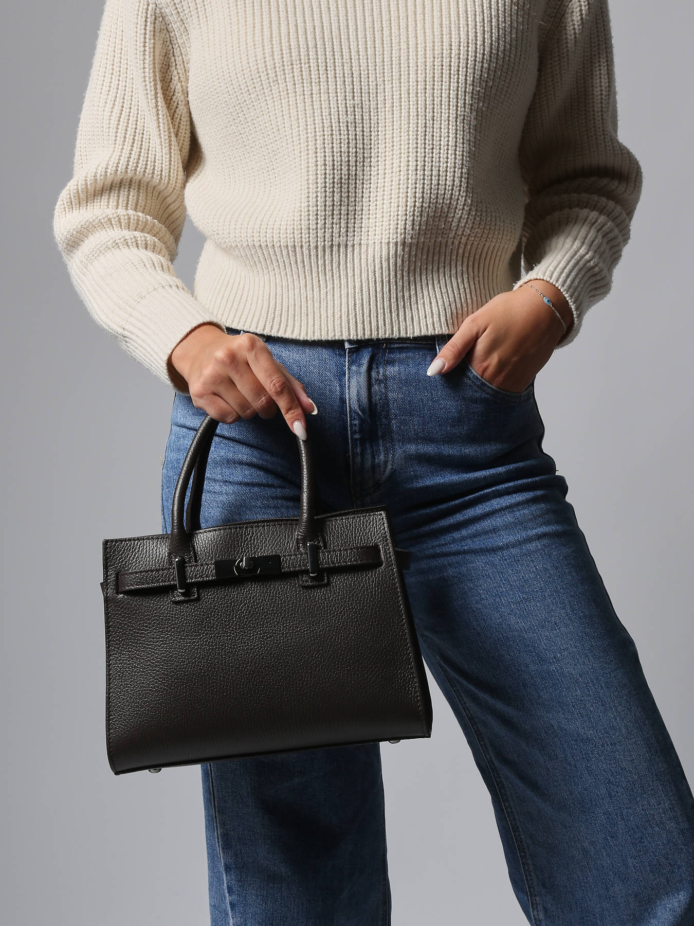 Handtas caviar leder