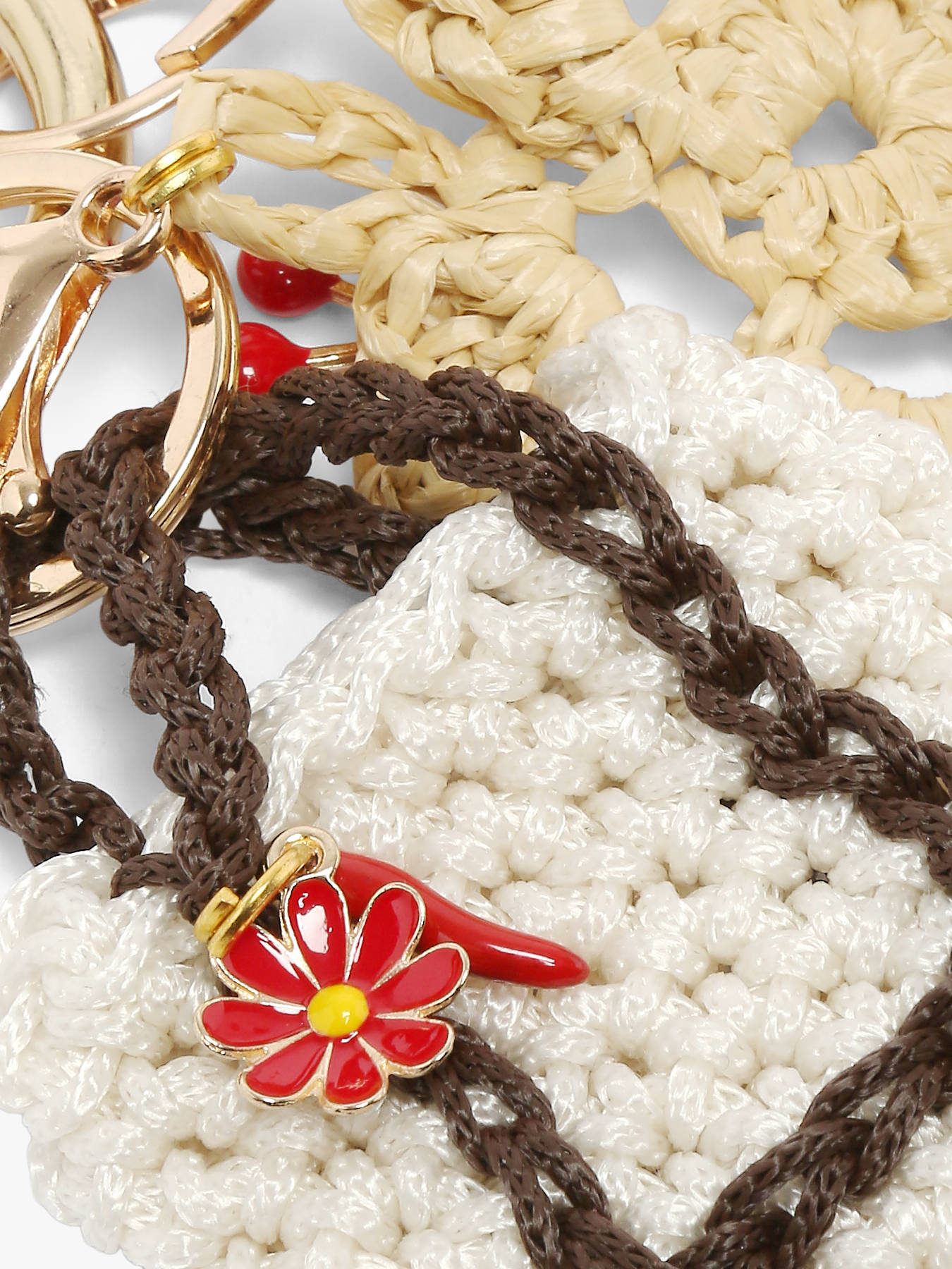 Bag charm fleurs leder